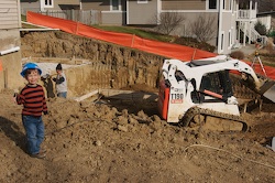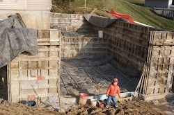 Foundation wall forms going up