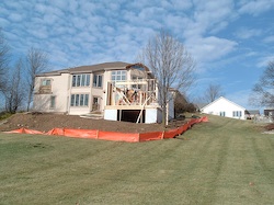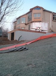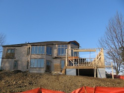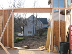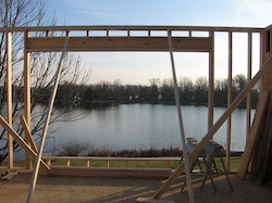 The foundation is set and the work begins on the floor joists